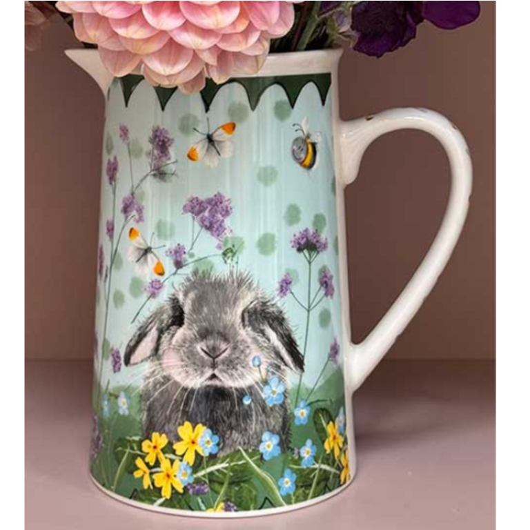 S motivem králíčka mezi květinami, autorkou je anglická malířka Alex Clark, značka Alex Clark Art.
