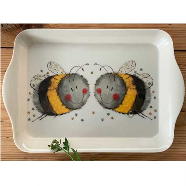 Melaminový tácek s motivem: včelka; autorkou je anglická malířka Alex Clark. Není určen pro přímý styk s potravinami. Značka Alex Clark Art.
