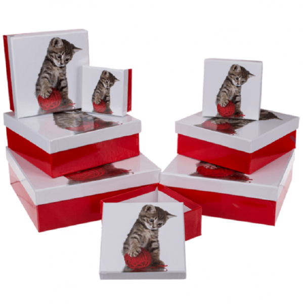 set krabic papírových krabic s potiskem, motiv: kočka, klubko