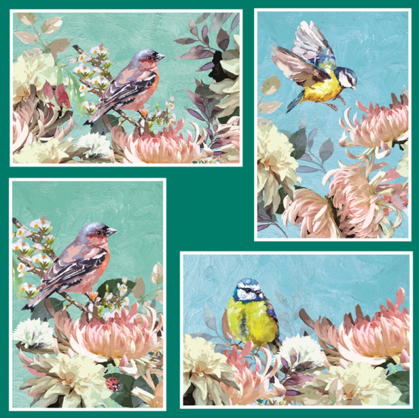 4 přání do obálky, motiv: sýkorka, značka Gifted Stationery Company