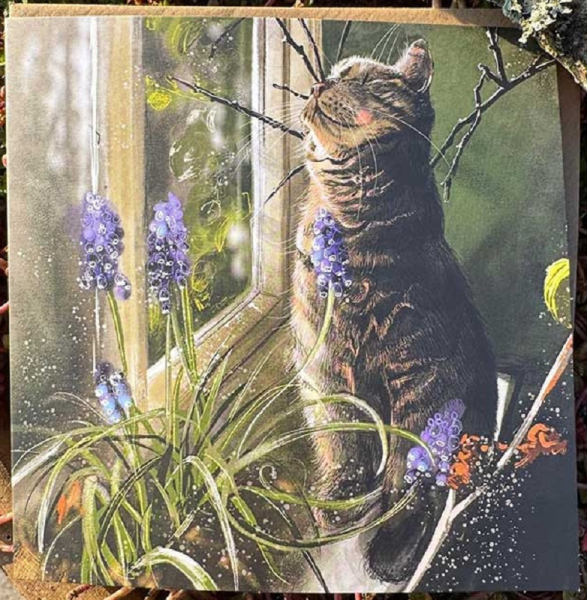 Přání do obálky s motivem: kočka, autorkou je anglická malířka Alex Clark. Rozměr 14*14 cm, značka Alex Clark Art.