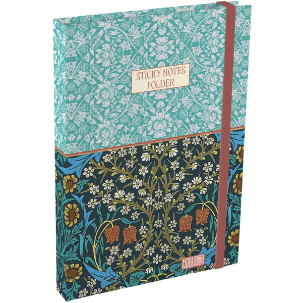 Složka s poznámkovým bločkem na jedné straně a různě velkými lepicími papírky na straně druhé; motiv Blackthorn od Williama Morrise. Zn. Gifted Stationery Company