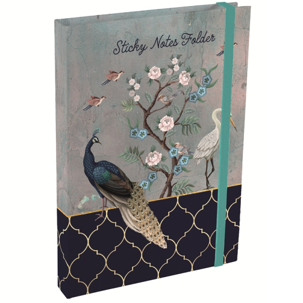 Složka s poznámkovým bločkem na jedné straně a různě velkými lepicími papírky na straně druhé; motiv: volavka. Zn. Gifted Stationery Company