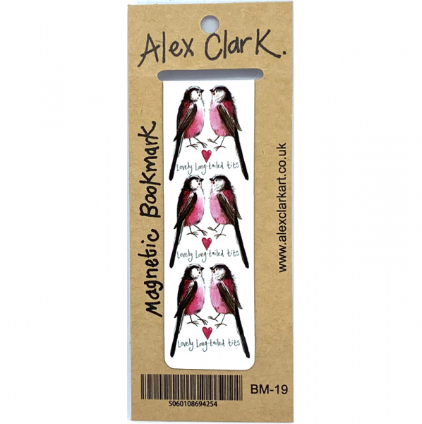 Magnetická záložka do knihy, motiv ptáčků, autorkou je anglická malířka Alex Clark. Rozložená má rozměr 2,5*16 cm, složená 2,5*8 cm, značka Alex Clark Art.
