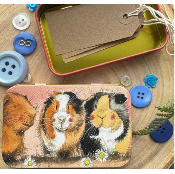 Plechová dóza vhodná jako obal na mýdlo, pralinky či jiné drobnosti, motiv: morče, zn. Alex Clark Art
